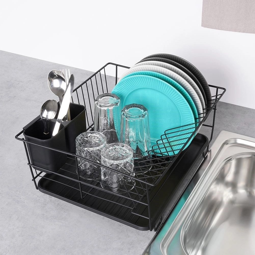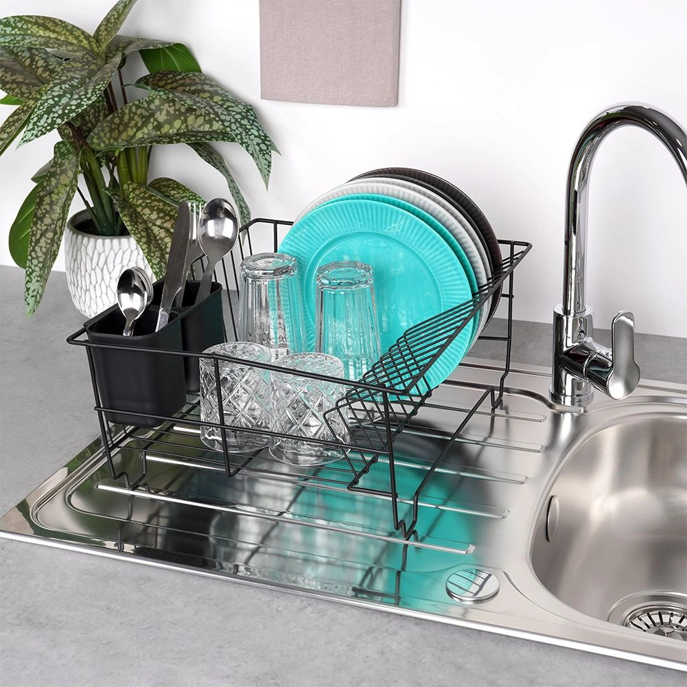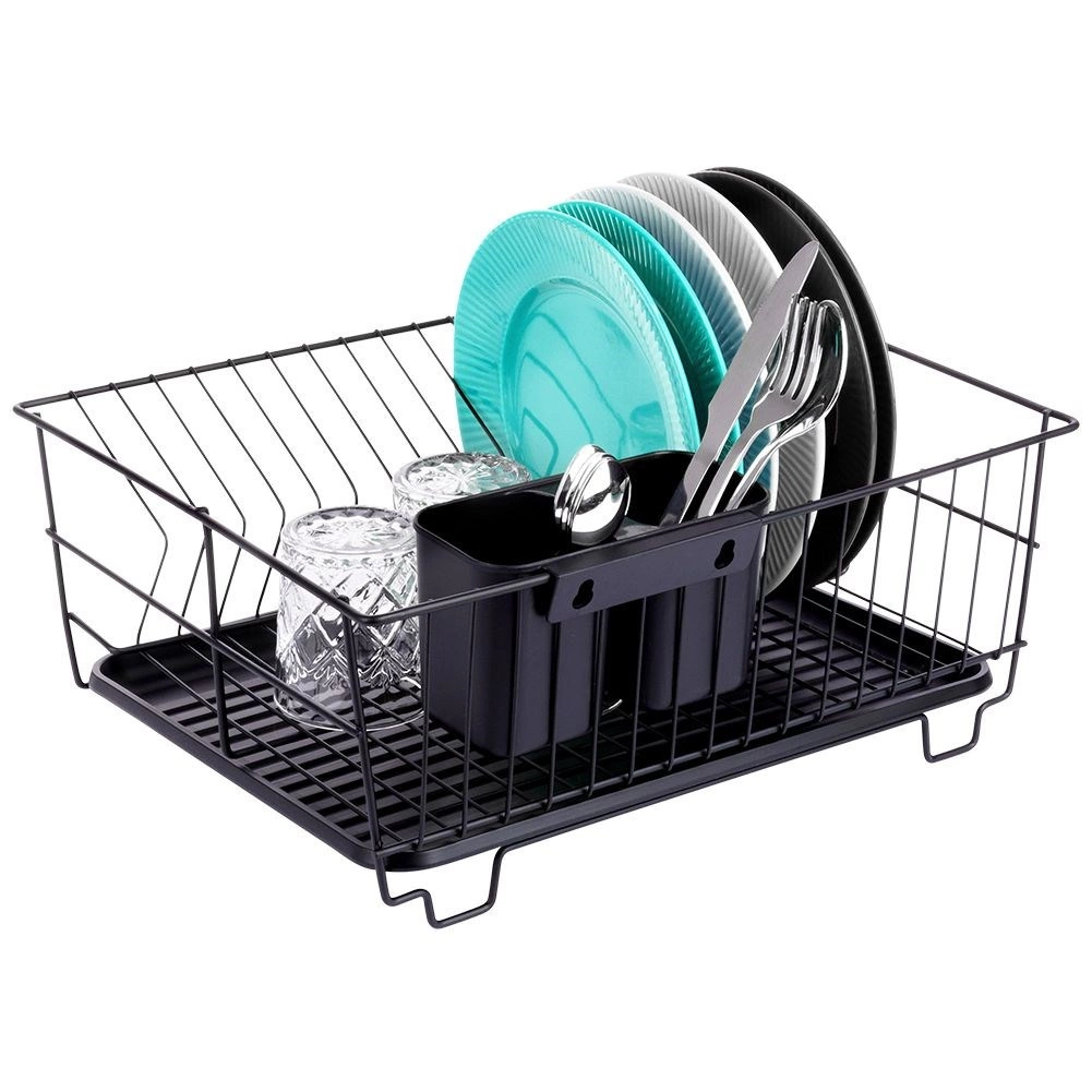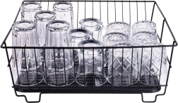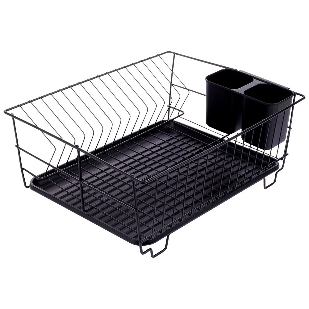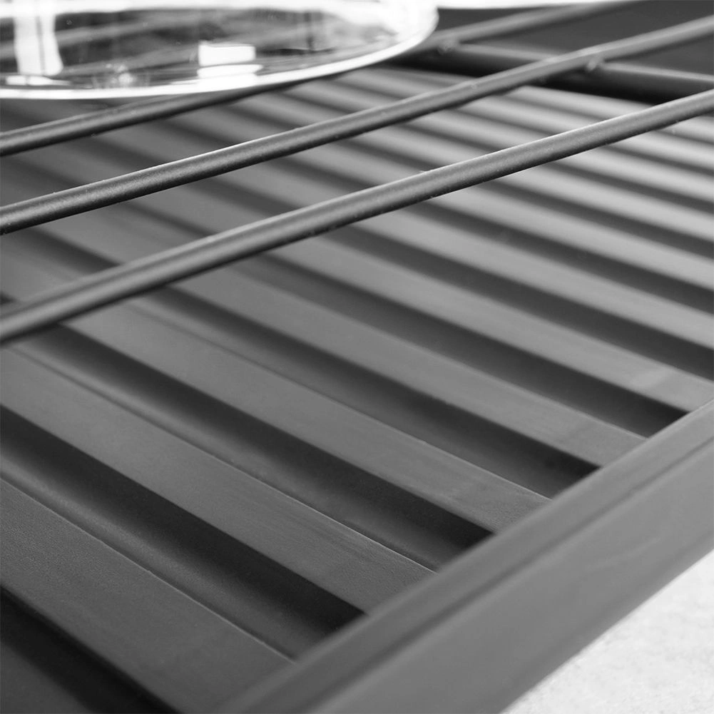 Stylowy i funkcjonalny ociekacz do naczyń z wytrzymałego metalu w matowej czerni łączy nowoczesny loftowy design z codzienną praktycznością. Zapewnia dedykowane miejsca na nawet 15 talerzy oraz sporo przestrzeni na szklanki, miski i większe elementy zastawy. Wyjmowana plastikowa taca ociekowa zbiera wodę i utrzymuje powierzchnię roboczą w suchości.