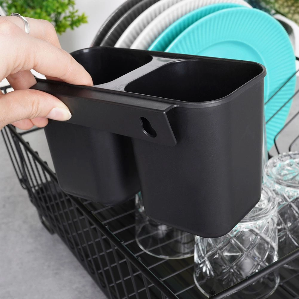 Dwukomorowy, odpinany koszyk na sztućce można zawiesić wewnątrz lub na zewnątrz suszarki w zależności od potrzeb, co zwiększa miejsce na szklanki czy kubki. Dzięki przemyślanej konstrukcji ociekacz jest łatwy do umycia i może służyć także jako komorowa suszarka w zlewie.