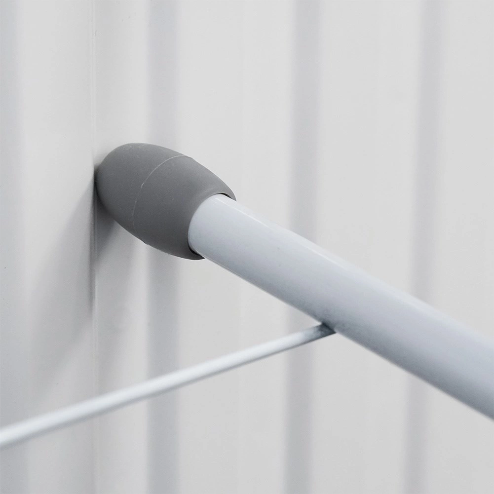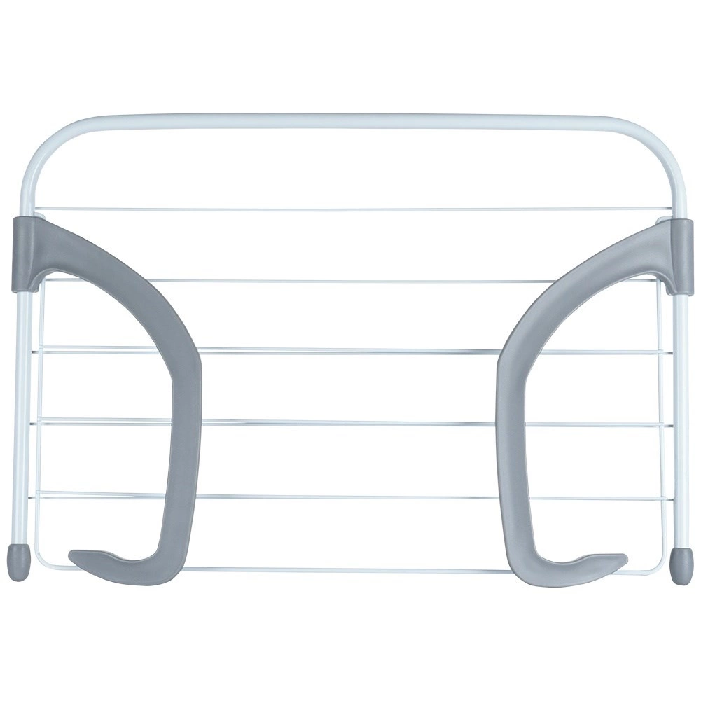 Montaż jest szybki i beznarzędziowy – wystarczy zawiesić ją za pomocą solidnych plastikowych haczyków. Po użyciu suszarkę złożysz na płasko i wygodnie schowasz do szafy lub szuflady. Trwała metalowa konstrukcja w białym kolorze i szare uchwyty zapewniają stabilność i długą żywotność.