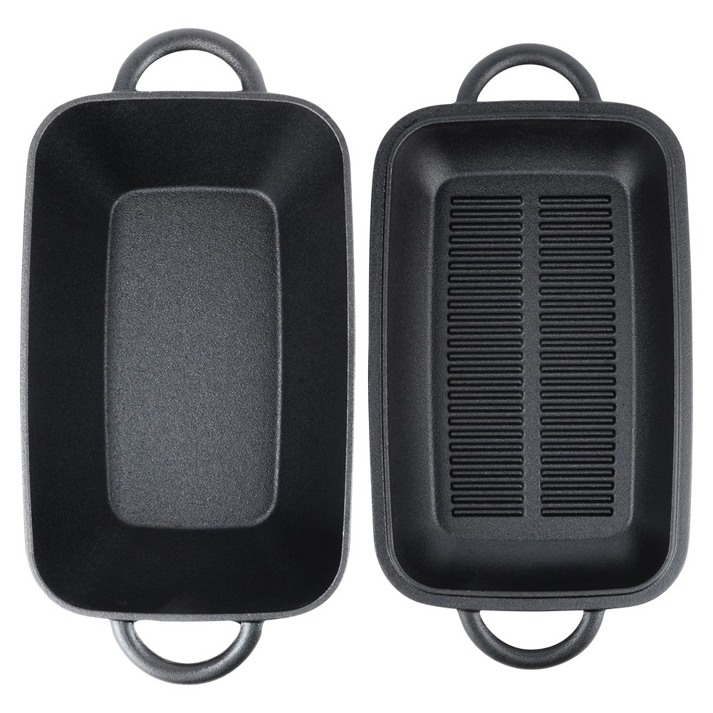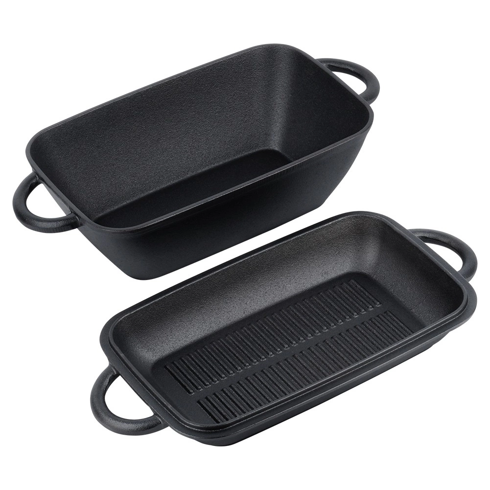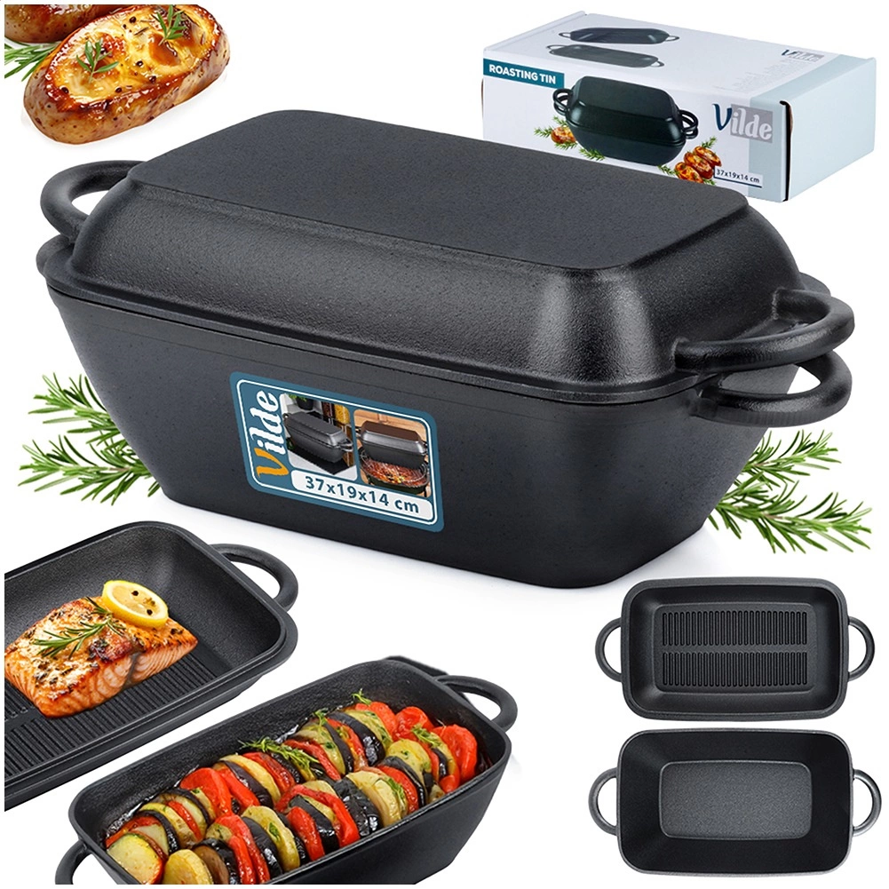 Uniwersalna żeliwna brytfanna 2w1 z pokrywką, która jednocześnie służy jako samodzielna patelnia grillowa. Solidne żeliwo świetnie rozprowadza ciepło i długo je utrzymuje, dzięki czemu jest idealne do pieczenia, duszenia i zapiekania mięsa, ryb oraz warzyw. Odpowiednia do wszystkich typów kuchenek, w tym indukcji, do piekarnika i na otwarty ogień.