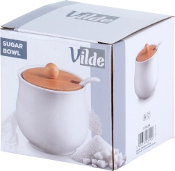 W zestawie znajduje się ceramiczna łyżeczka (długość 13 cm), którą można odłożyć do wycięcia w pokrywce – cukier masz zawsze pod ręką i higienicznie przykryty.