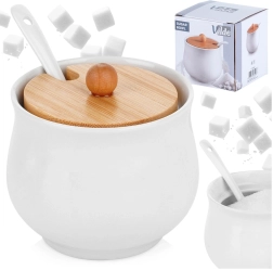 Ta stylowa cukiernica łączy czystą białą szkliwioną ceramikę z naturalnym bambusem, tworząc ponadczasowy wygląd, który pasuje do każdej kuchni lub kawiarni. Dzięki praktycznemu wycięciu w pokrywce możesz wygodnie przechowywać łyżeczkę wewnątrz, nie tracąc szybkiego dostępu do zawartości.
