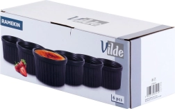 Każda miseczka ma przybliżone wymiary 10 × 5 cm i pojemność 260 ml, co stanowi idealny rozmiar na indywidualne porcje. Praktyczny zestaw 6 szt. oszczędza miejsce dzięki możliwości sztaplowania i ułatwia serwowanie dla rodziny i gości. Oryginalny produkt marki VILDE, wyprodukowany zgodnie z europejskimi standardami.