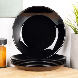 Odkryj uniwersalne talerzyki deserowe, które świetnie sprawdzą się do tortów, deserów, przystawek oraz mniejszych porcji śniadań i kolacji. Czarne szkło opalowe prezentuje się luksusowo niczym porcelana, a jednocześnie jest praktyczne w codziennym użytkowaniu i łatwe w pielęgnacji.
