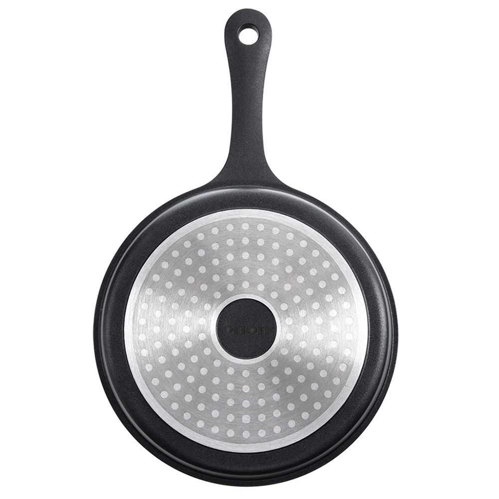 Jednoczęściowa konstrukcja zapewnia wytrzymałość, stabilność i równomierne nagrzewanie na całej powierzchni patelni.