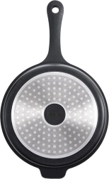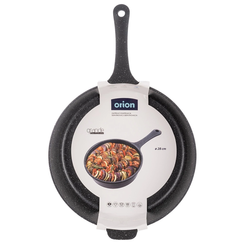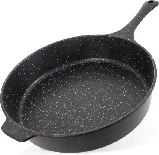 Głęboka patelnia GRANDE o średnicy 28 cm i pojemności 3 l z odlewanego aluminium do codziennego gotowania. Ma nieprzywierającą, granitową powłokę Pfluon Granit bez PFOA i PTFE, jest odpowiednia do wszystkich typów kuchenek, w tym indukcji, do piekarnika i zmywarki. Solidna, jednolita konstrukcja z wygodnym uchwytem zapewnia równomierne rozprowadzanie ciepła oraz szybkie i oszczędne smażenie oraz duszenie.