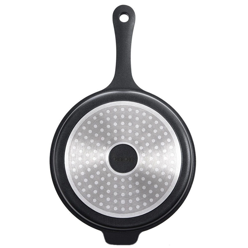 Solidne, kanapkowe dno zapewnia efektywne przenoszenie ciepła na gazie, prądzie, płycie ceramicznej i indukcji.
