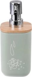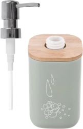Stylowy dozownik na mydło w płynie lub płyn do naczyń o pojemności 350 ml doskonale sprawdzi się przy umywalce i zlewie. Korpus z wysokiej jakości syntetycznego kamienia wygląda jak ceramika, dopełniają go bambusowa pokrywka oraz błyszcząca pompka dla wygodnego dozowania.