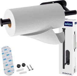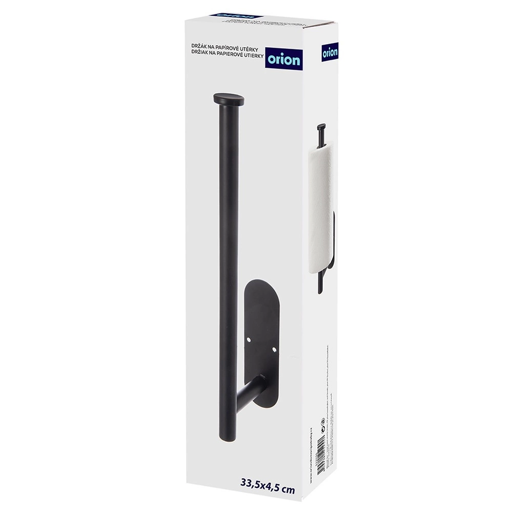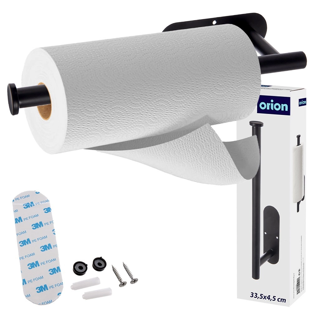 Praktyczny ścienny uchwyt na papierowe ręczniki z wytrzymałego metalu w czarnym kolorze oszczędza miejsce i umożliwia szybkie, wygodne odrywanie jedną ręką. Dzięki dwóm opcjom montażu (taśma 3M bez wiercenia lub śruby) sprawdzi się w kuchni, łazience i biurze. Uniwersalny rozmiar 33,5 × 9,2 × 4,5 cm jest kompatybilny z typowymi rolkami, a stabilna konstrukcja zapewnia długą żywotność.