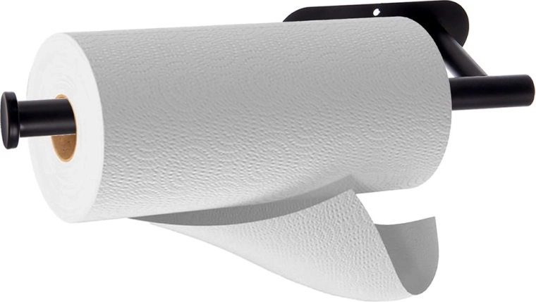 Ścienny projekt zwalnia miejsce na blacie i umożliwia łatwe odrywanie ręczników jedną ręką.