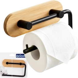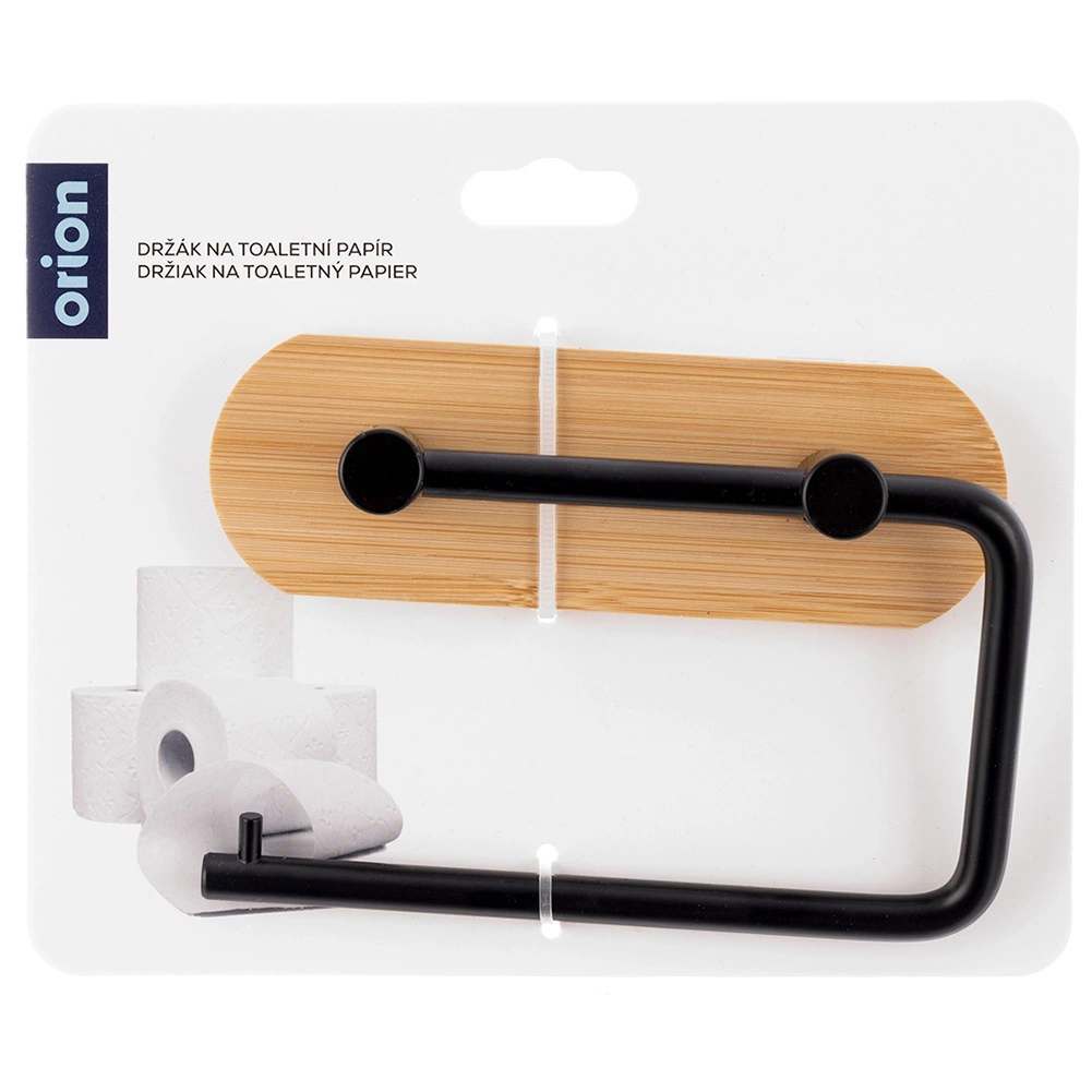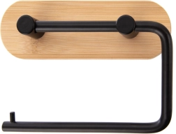 Uchwyt ścienny na papier toaletowy z bambusu i czarnego metalu 13,5 cm