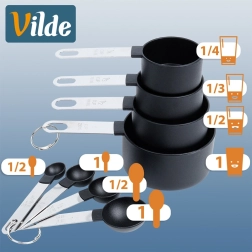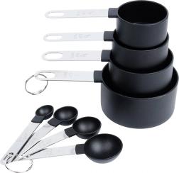 Ten uniwersalny zestaw miarek łączy cztery kubki miarowe i cztery łyżki miarowe do szybkiego i precyzyjnego odmierzania składników sypkich i płynnych. Każdy element ma wyraźne oznaczenia pojemności (kubki, łyżki, łyżeczki), dzięki czemu nie pomylisz się przy przygotowywaniu przepisów.