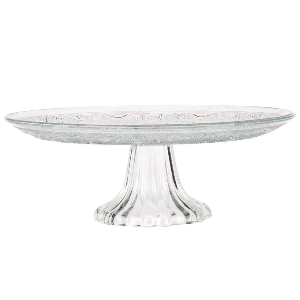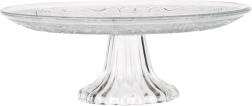 Szklana patera na nodze jest idealna do serwowania i prezentacji tortów, ciast, deserów oraz słonych przekąsek. Klasyczny okrągły kształt z dekoracyjnym reliefem doskonale komponuje się z każdą zastawą i podkreśla wygląd podawanych specjałów.