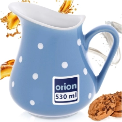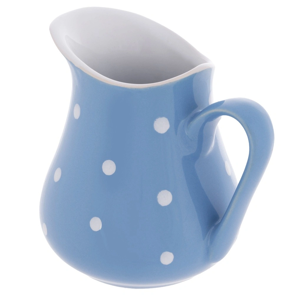 Uniwersalny ceramiczny dzbanek nadaje się do wody, lemoniady, wina, mleka i śmietanki, a także do podawania sosów. Dzięki kompaktowym wymiarom doskonale sprawdzi się przy śniadaniach, na popołudniowej herbacie oraz podczas domowych przyjęć. Niebieskie szkliwo z białymi kropkami nada nakrytemu stołowi figlarny i elegancki akcent.