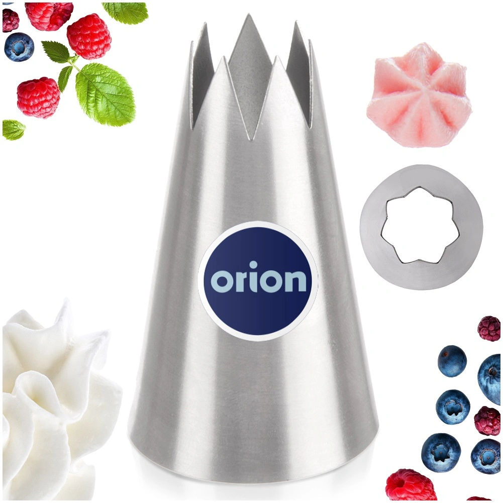 Duży otwarty kształt tworzy wyraziste swirls, rozetki i kwiaty, idealne na torty i babeczki.