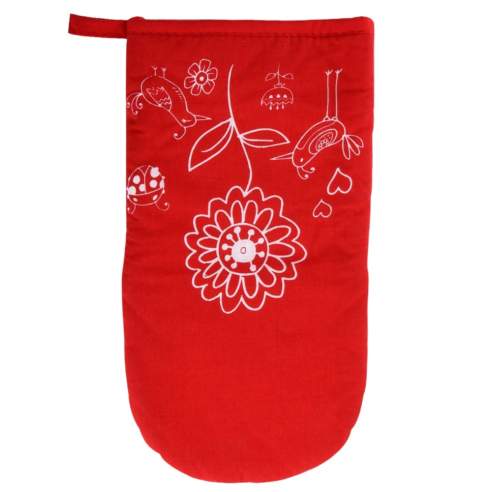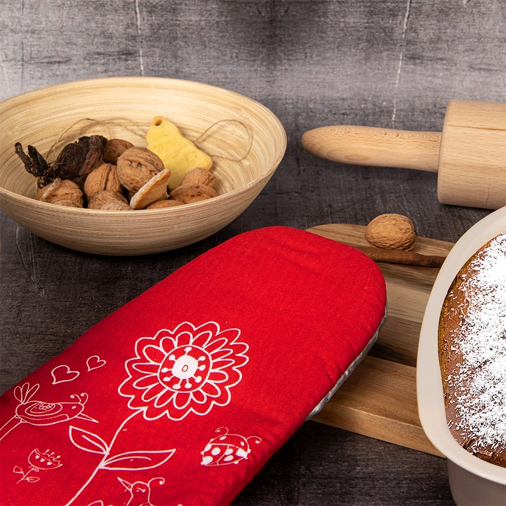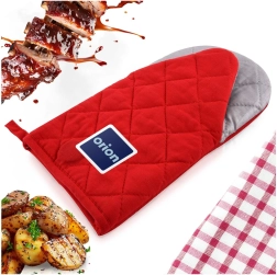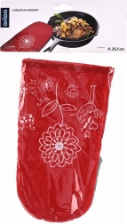 Ta czerwona kuchenna rękawica łączy atrakcyjny wygląd z wysoką funkcjonalnością. Zewnętrzną część z wytrzymałego poliestru uzupełnia bawełniana powierzchnia chwytna z teflonową powłoką, która zapewnia niezawodną ochronę termiczną podczas gotowania i pieczenia. Rękawica dobrze przylega do dłoni i ułatwia bezpieczne przenoszenie gorących blach, brytfann i garnków.