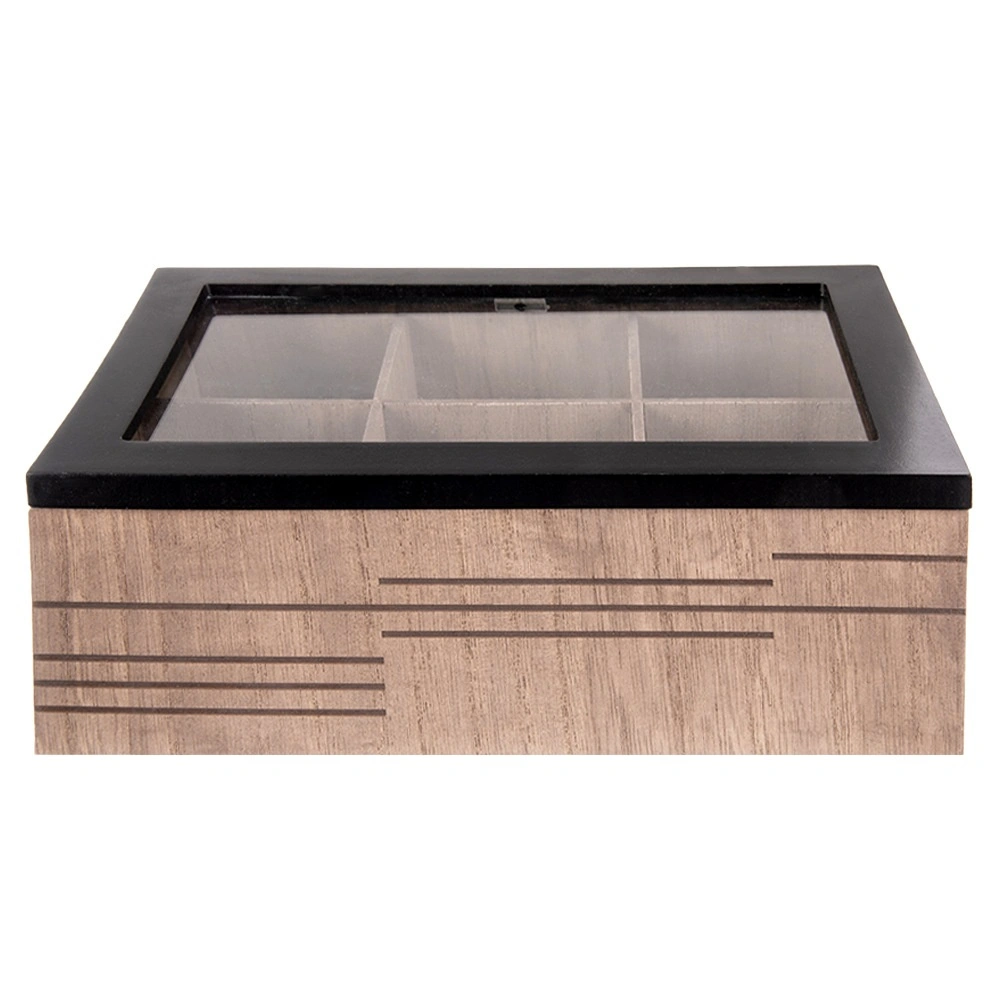 Uporządkuj różne rodzaje i smaki herbat w przejrzystych przegródkach i zachowaj ich aromat oraz świeżość na dłużej. Pudełko na herbatę LINE łączy atrakcyjny naturalny wygląd ze szklanym okienkiem i praktycznym podziałem wnętrza.