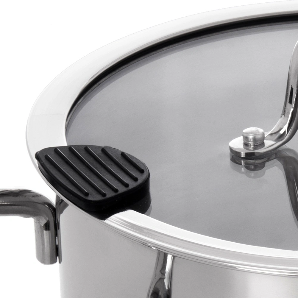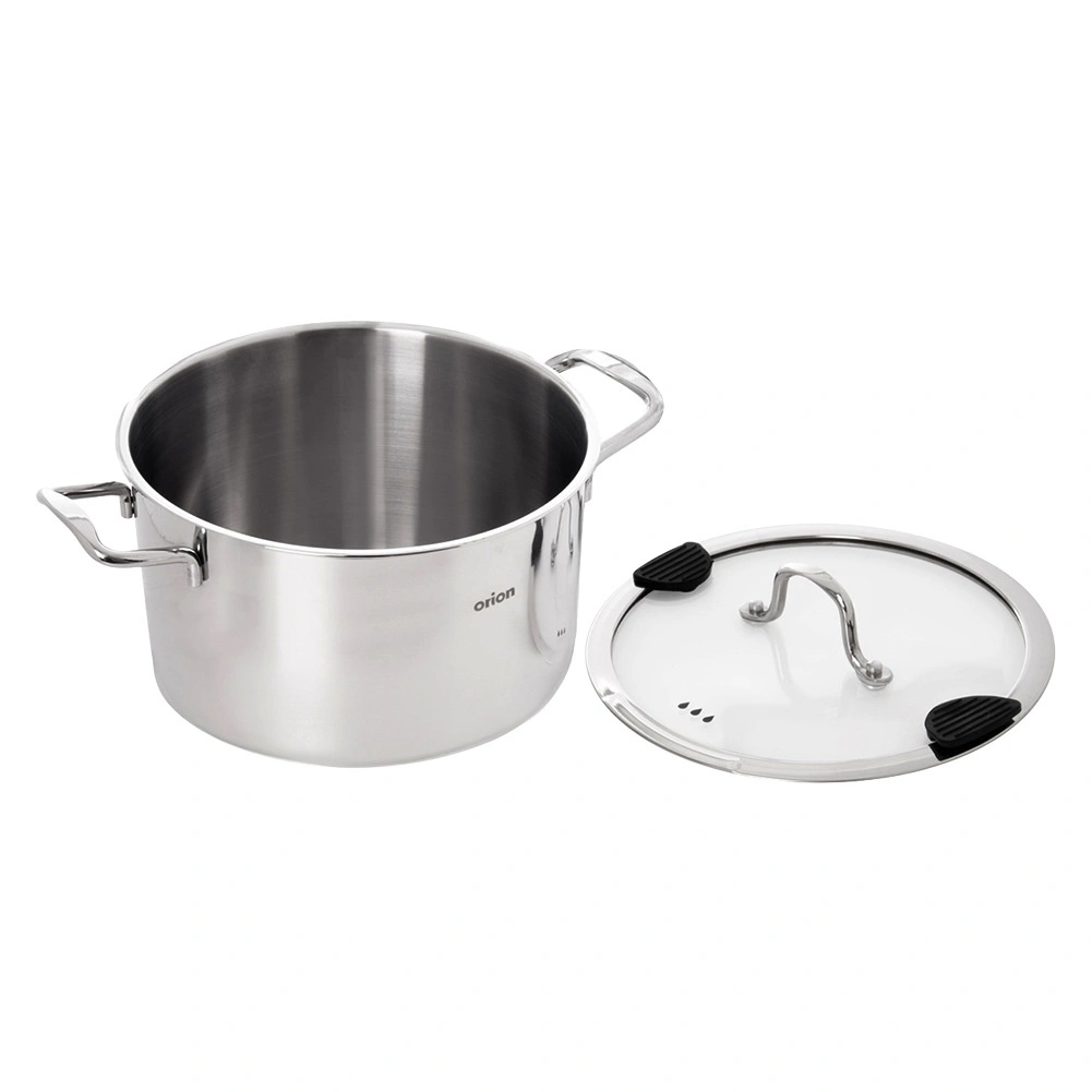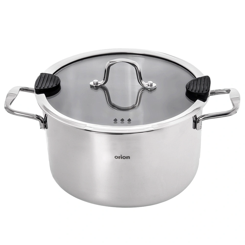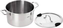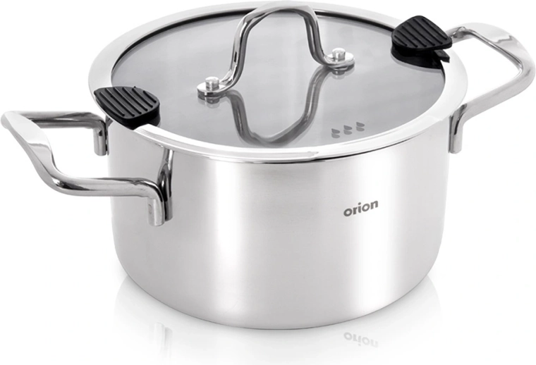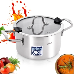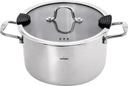 Duży uniwersalny garnek z wysokiej jakości stali nierdzewnej o średnicy 24 cm i pojemności 6,2 l do codziennego gotowania. Ma szklaną pokrywkę z praktycznym dziobkiem do odlewania i silikonowymi elementami dla bezpiecznego odcedzania wody. Dzięki wielowarstwowemu dnu z aluminiowym rdzeniem równomiernie rozprowadza ciepło, jest odpowiedni na gaz, kuchenkę elektryczną, ceramiczną i indukcję oraz można go używać również w piekarniku do 200 °C. Trwała stal nierdzewna 304, łatwa pielęgnacja i możliwość mycia w zmywarce.