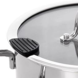 Praktyczna pokrywka umożliwia wygodne odlewanie wody z makaronu czy ziemniaków, a jednocześnie odprowadza nadmiar pary dla bezpieczniejszego gotowania.