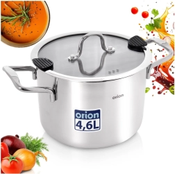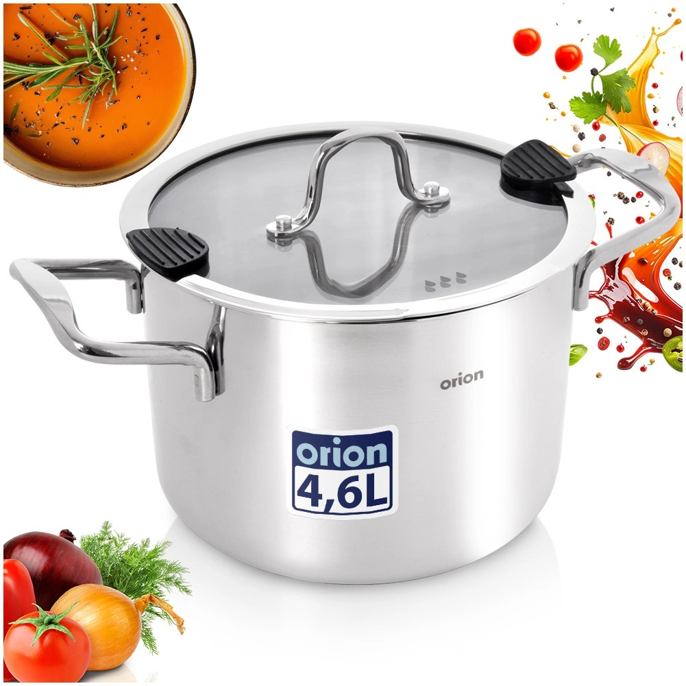 Wysokiej jakości stal nierdzewna z polerowaną powierzchnią oraz żaroodporna pokrywka zapewniają długą żywotność, łatwą pielęgnację i kontrolę nad gotowaniem.