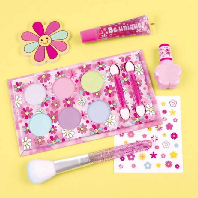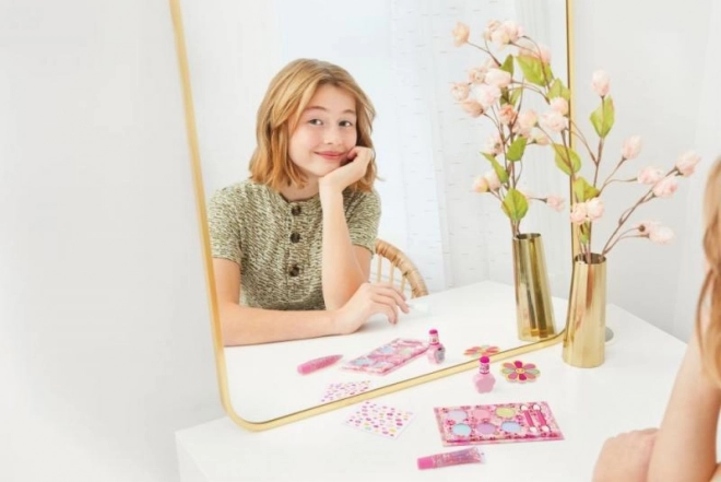 Dzięki temu zestawowi kosmetycznemu Kwitnące Piękno stworzysz doskonały kwiatowy look. W zestawie znajduje się kwiatowy pilnik do przygotowania paznokci, różowy lakier oraz naklejki na paznokcie.