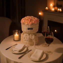 Pudełko z dyskretną kokardą i teksturowaną materiałową powierzchnią pasuje do nowoczesnych i klasycznych wnętrz. To gotowy prezent – wystarczy wręczyć i sprawić radość. Doskonały na Walentynki, Dzień Kobiet, rocznice, śluby i urodziny.