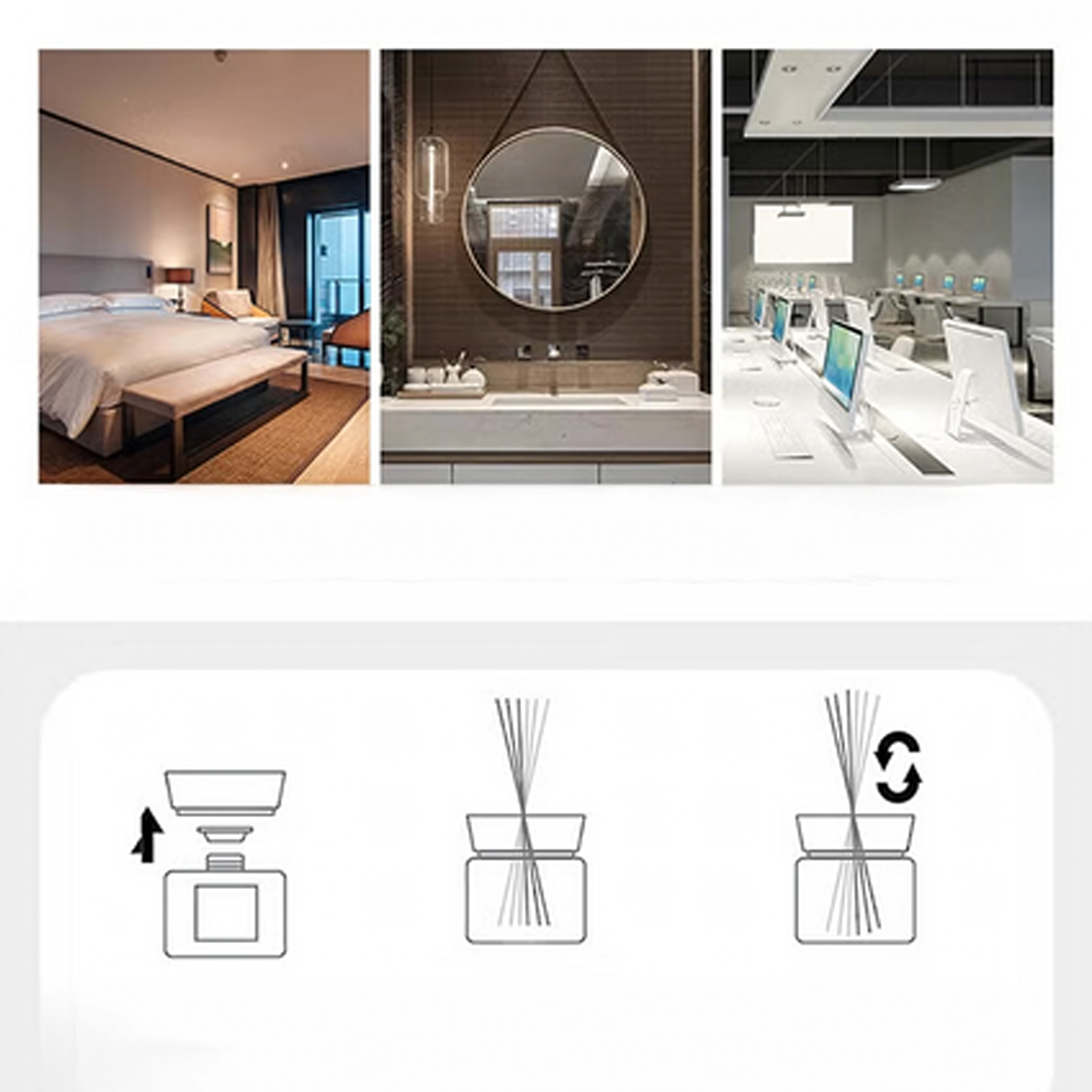 Patyczki rattanowe stopniowo uwalniają zapach bez potrzeby użycia płomienia ani gniazdka. Odpowiednie do sypialni, łazienki i biura; aby odświeżyć intensywność, wystarczy obrócić patyczki.