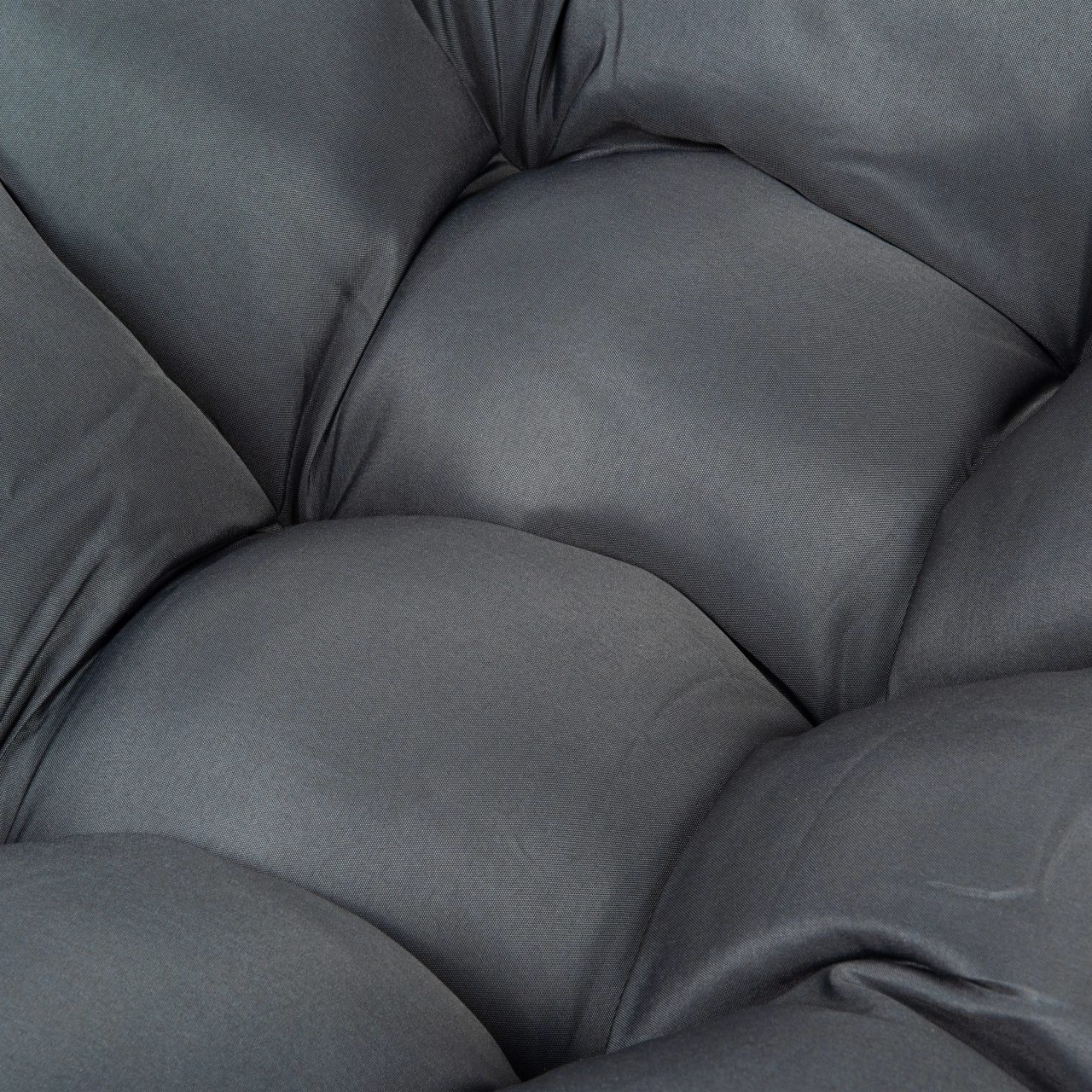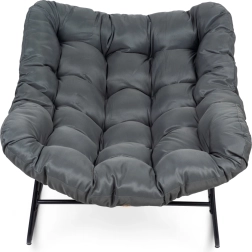 Wytrzymała metalowa konstrukcja dba o stabilność w codziennym użytkowaniu, a wiązania poduchy zapobiegają jej przesuwaniu się podczas siedzenia. Dzięki wymiarom XL wygodnie usiądziesz nawet po turecku lub dodasz małą poduszkę lędźwiową. Doskonale pasuje do salonu, sypialni, kącika czytelniczego i domowego biura.