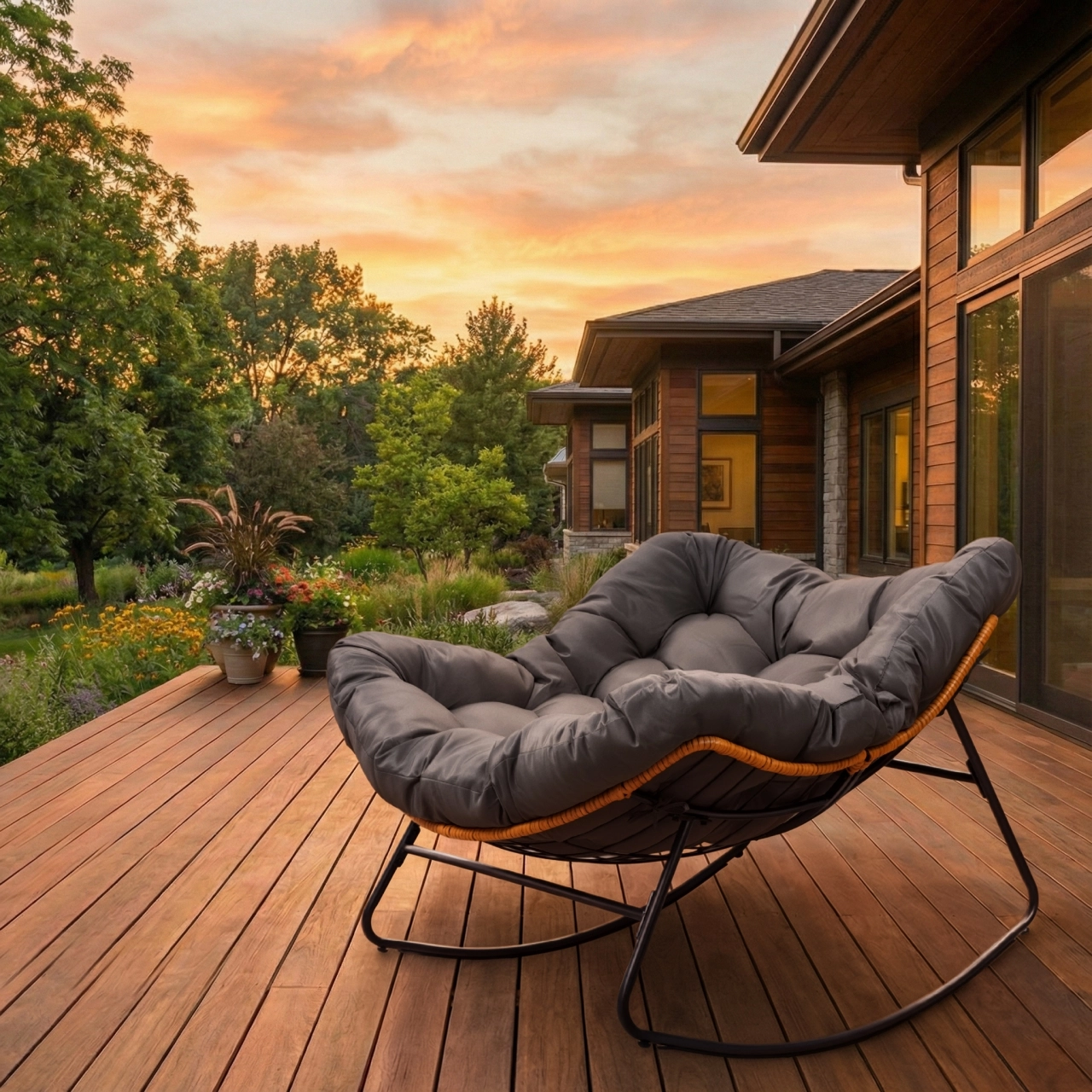 - Komfort XL: głębsze siedzisko niż w typowych fotelach bujanych.