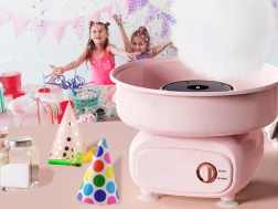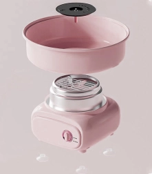 Słodka radość dla dzieci i dorosłych prosto w domu. Stylowy różowy design świetnie pasuje do nowoczesnej kuchni i kącika dla dzieci, natychmiast tworząc odświętną atmosferę. Wystarczy wsypać łyżeczkę cukru, włączyć i po kilku sekundach zacząć nawijać puszystą watę cukrową.
