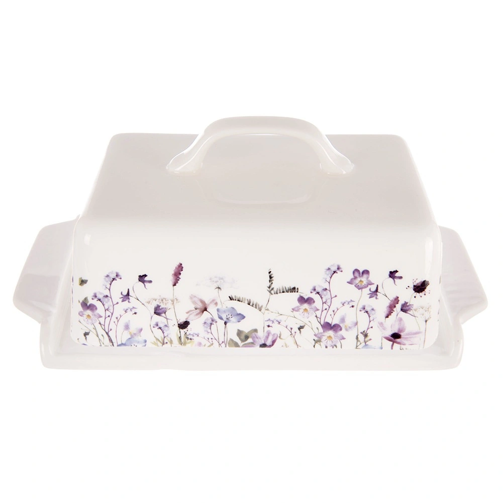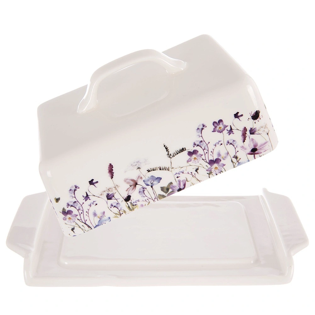 Ten porcelanowy pojemnik na masło w białym kolorze z uroczym motywem łąkowych kwiatów to stylowy i funkcjonalny dodatek do każdej kuchni. Utrzymuje masło chronione, świeże i gotowe do podania prosto na stół. Dzięki pokrywce z wygodnym uchwytem łatwo się nim posługiwać, a masło pozostaje higienicznie przykryte.