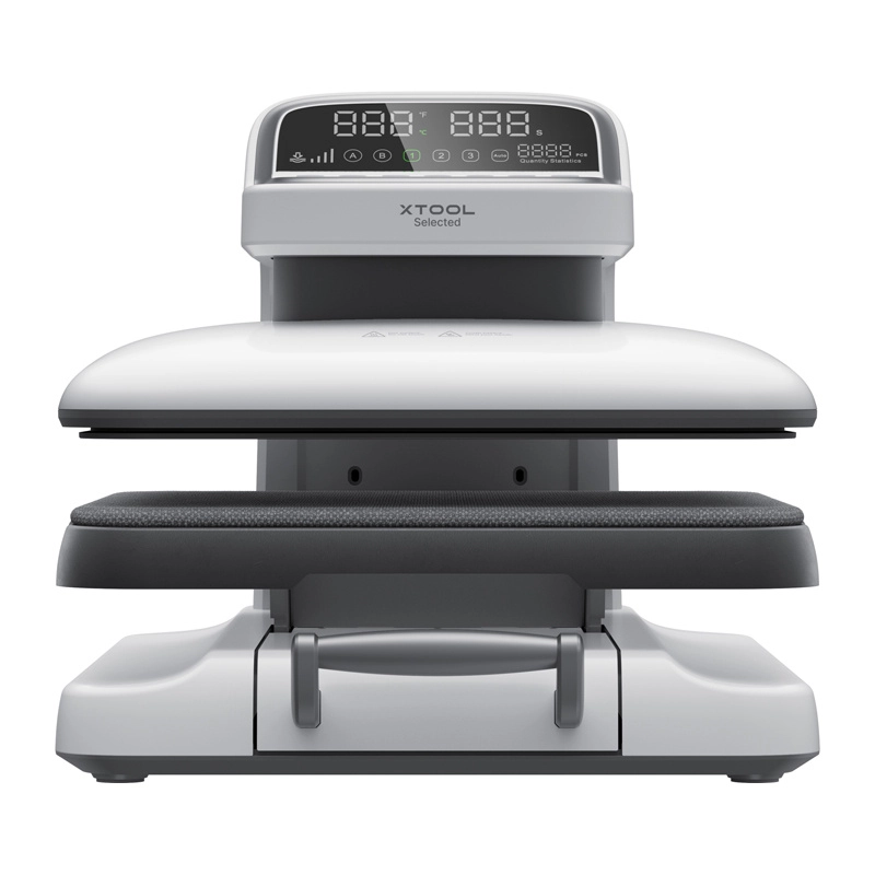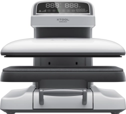 xtool selected heatpress 2 to inteligentna prasa do transferów, która automatyzuje nacisk, czas i temperaturę. Wystarczy wybrać tryb, ułożyć materiał, a urządzenie samo prasuje, odmierza czas i po cyklu automatycznie się otwiera. Dzięki stabilnemu naciskowi w zakresie 60–180 kg uzyskasz bardziej nasycone kolory, ostre kontury i bardzo trwałe nadruki także na grubszych tekstyliach.