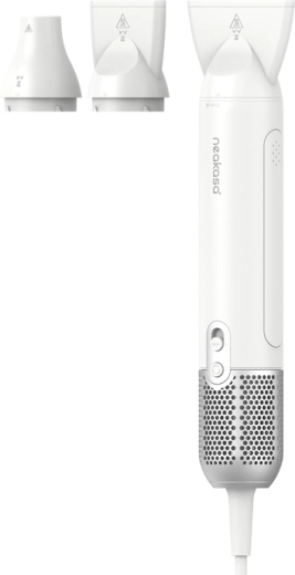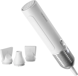 W zestawie znajdziesz 3 nasadki: szeroką płaską do dużych powierzchni, klasyczną płaską do szybkiego dosuszania oraz okrągłą do nadawania objętości i trudno dostępnych miejsc (łapy, okolice uszu). Suszarka waży tylko 550 g, ma 28,8 cm długości, posiada miękkie dotykowe sterowanie, magnetyczny filtr dla łatwego czyszczenia oraz 2‑metrowy przewód dla wygodnej obsługi.