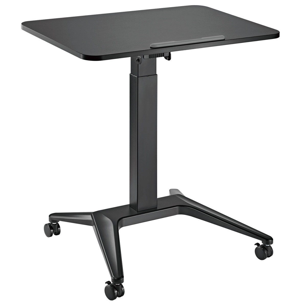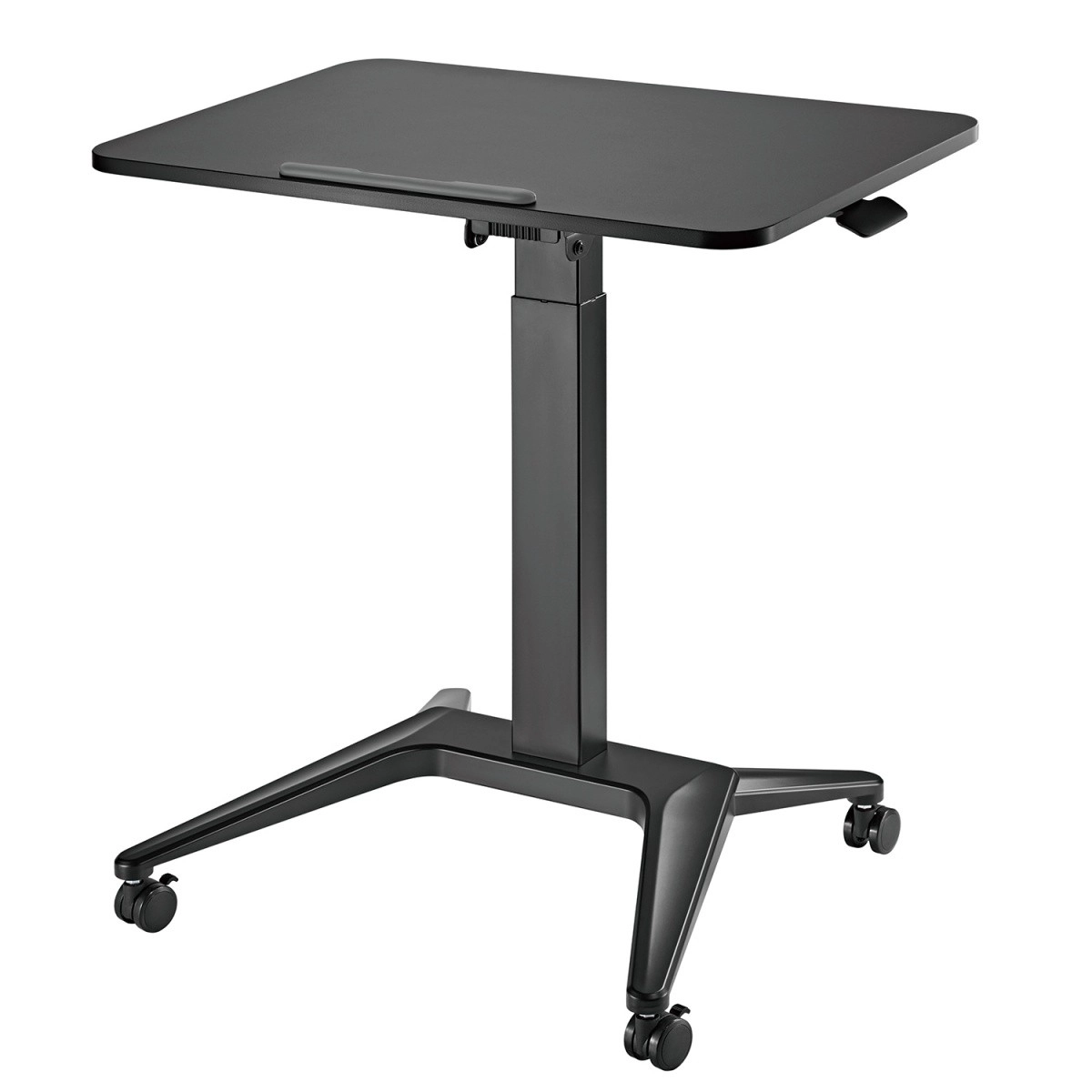 Odkryj swobodę ruchu podczas pracy. Mobilny stolik na laptop z płynną pneumatyczną regulacją wysokości 76–109 cm oraz możliwością ustawienia nachylenia blatu zapewni wygodne i zdrowe środowisko pracy. Łatwo dopasujesz pozycję do pisania, czytania lub rysowania.
