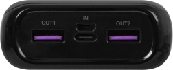 Dwa wyjścia USB-A, wejście USB-C i microUSB zapewniają elastyczne podłączenie i wygodne ładowanie wielu urządzeń jednocześnie.