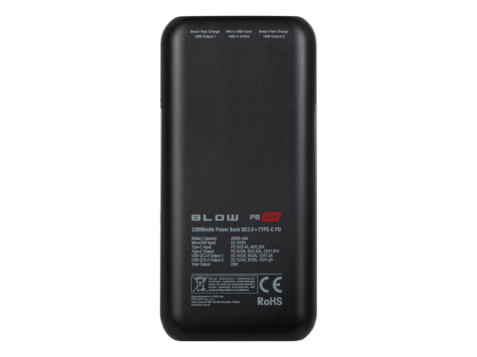 - Duża pojemność 20000 mAh dla wielokrotnego doładowania na jednym naładowaniu