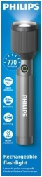 Kompaktowa latarka akumulatorowa PHILIPS z ładowaniem przez USB‑C oferuje strumień świetlny 770 lm, wytrzymały aluminiowy korpus oraz zintegrowaną baterię 3000 mAh do niezawodnego oświetlenia w domu, w warsztacie i na zewnątrz.