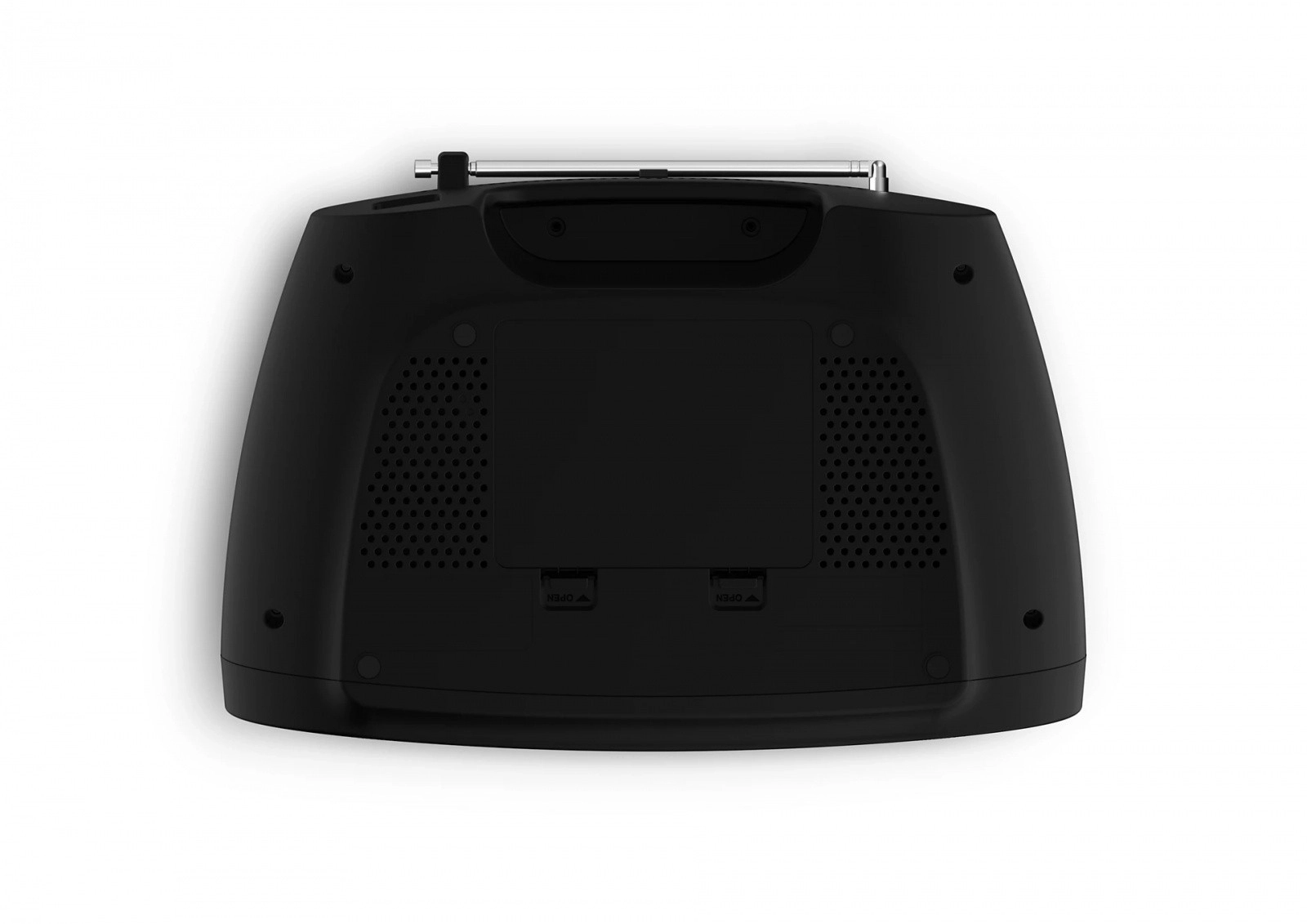 Górny napęd CD, USB dla MP3, wejście AUX dla starszych źródeł oraz złącze 3,5 mm do prywatnego odsłuchu – wszystko w jednym kompaktowym boomboksie.