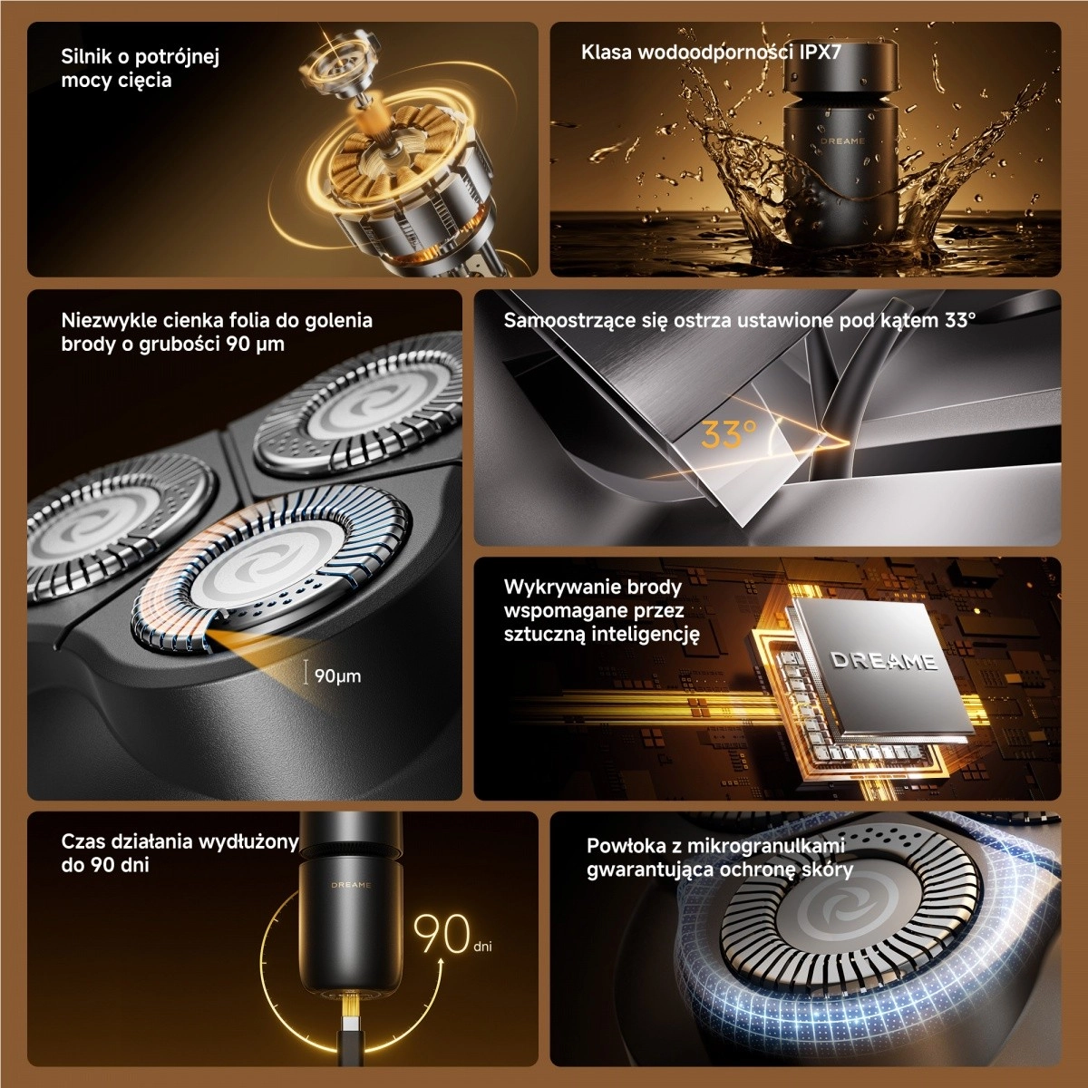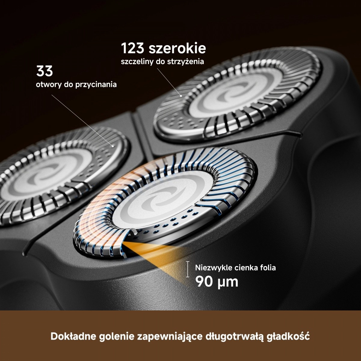 Inteligentny system AI na bieżąco ocenia gęstość zarostu i w czasie rzeczywistym dostosowuje moc wysokoprędkościowego silnika, skracając czas golenia i ograniczając konieczność powtórnych przejazdów. Dzięki obudowie z klasą IPX7 maszynkę łatwo czyścić pod bieżącą wodą i idealnie nadaje się do goleniа na sucho i mokro.