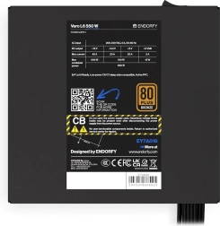 ENDORFY Vero L6 550 W to niezawodny zasilacz do wydajnych zestawów, który radzi sobie z impulsowymi poborami mocy i stabilnie zasila nowoczesne komponenty. Dzięki certyfikatom 80 PLUS Bronze i Cybenetics Silver osiąga wysoką sprawność i niskie temperatury pracy. Kulturalną pracę zapewnia cichy wentylator Stratus 120 mm z łożyskami FDB, oceniony przez Cybenetics na poziomie Noise Rating A-.