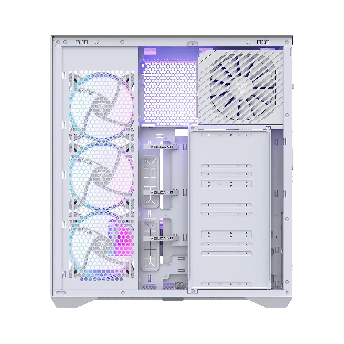 Volcano Space XL to idealny wybór dla wymagających graczy i twórców, którzy chcą mieć wydajność i styl na widoku. Hartowane szkło z przodu i z boku zamienia Twój PC w elegancką witrynę z efektownym podświetleniem ARGB. Dzięki przemyślanemu wnętrzu z obsługą komponentów E-ATX i chłodzenia wodnego do 420 mm zbudujesz zestaw bez kompromisów.
