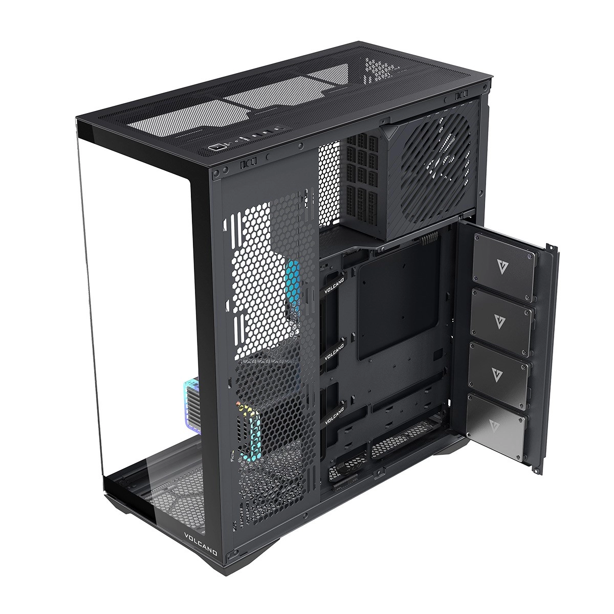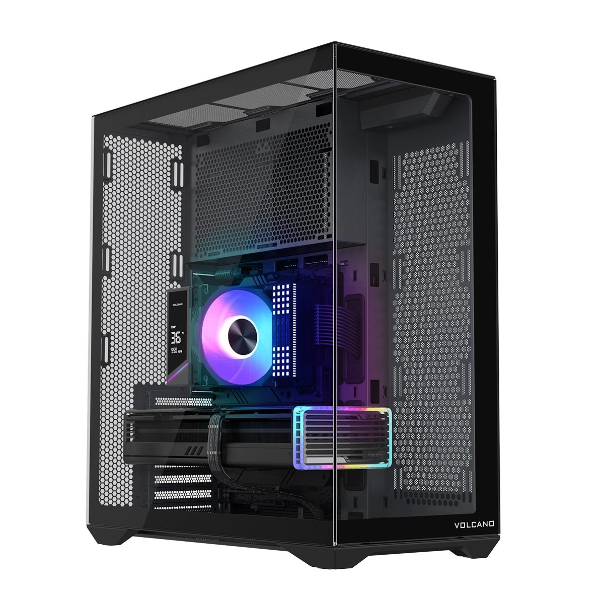 Volcano Space XL nadaje Twojej konfiguracji zasłużoną scenę wystawową: przedni i boczny panel z hartowanego szkła działają jak witryna i podkreślają każdy detal oraz efekty ARGB wentylatorów i komponentów. Obudowa stworzona do personalizacji i idealnego porządku, w tym wsparcia dla płyt głównych z odwróconymi złączami dla ukrytego prowadzenia kabli i ultraczystego wyglądu.