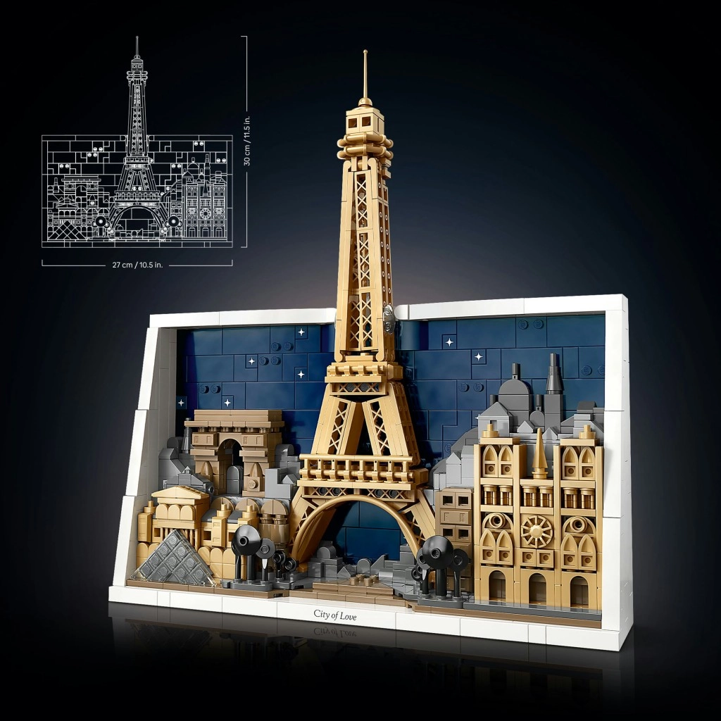 Ten premiumowy zestaw dla dorosłych przenosi atmosferę PARYŻA prosto do Twojego wnętrza. Szczegółowe trójwymiarowe diorama w białej ramowej konstrukcji z „płótna” z klocków świetnie prezentuje się na ścianie i na półce, stając się stylową dekoracją domu lub biura. Zbudujesz wierne miniatury ikon – od Wieży Eiffla przez Notre-Dame po Łuk Triumfalny i szklaną piramidę Luwru – wszystko na nocnym, gwiaździstym tle.