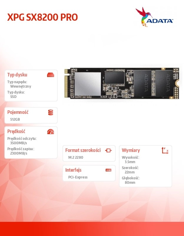 SSD XPG SX8200 Pro to idealny wybór dla graczy, entuzjastów i twórców treści, którzy wymagają maksymalnej szybkości i responsywności systemu. Nowoczesny interfejs PCIe Gen3x4 i protokół NVMe 1.3 wyraźnie przewyższają wydajność typowych dysków SATA SSD, skracając czas wczytywania gier, start systemu oraz pracę z dużymi plikami.