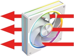 Specjalny kształt łopatek zwiększa przepływ i nacisk statyczny dla skutecznego chłodzenia obudów i radiatorów. Podkładki antywibracyjne eliminują niepożądane drgania.
