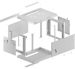 Dzięki opakowaniu Flat Pack szafę można łatwo przewieźć nawet mniejszym autem, a jej złożenie przebiega szybko z pomocą przejrzystych instrukcji. Zintegrowane szyny 19" z oznaczeniem U ułatwiają montaż urządzeń oraz uporządkowane prowadzenie okablowania.