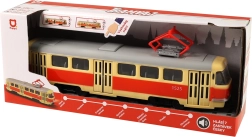 Czerwono-biały tramwaj zapowiada stacje w języku czeskim, dzięki czemu wszyscy pasażerowie wiedzą, kiedy mają wysiąść. Tramwaj zapowiada 7 przystanków: Dworzec Główny, Aquapark, Ogród Zoologiczny, Stadion Sportowy, Szkoła Podstawowa i Przedszkole, Teatr, Centrum Handlowe. Drzwi otwierają się ręcznie, a jako dopracowany detal po ich otwarciu wnętrze rozświetla się na niebiesko. Za każdym razem, gdy drzwi się otwierają, słychać zapowiedź, a przy zamykaniu migają nawet przednie światła. Przestronny tramwaj wykonany z plastiku i porusza się na swobodnym biegu. A więc wsiadać, zaczyna się jazda pełna zabawy!