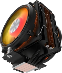 Gęste aluminiowe finy oraz 4× miedziane heatpipe 6 mm w bezpośrednim kontakcie z procesorem skutecznie odprowadzają ciepło do 230 W TDP. Cichy wentylator 120 mm z regulacją PWM 800–2000 obr./min i łożyskiem hydrodynamicznym zapewnia optymalny stosunek wydajności do hałasu (maks. 37,48 dBA) oraz długą żywotność 40 000 h.
