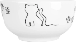 Delikatna czarno-biała ilustracja kota i łapek nadaje misce oryginalny charakter i łatwo komponuje się z pozostałą zastawą.