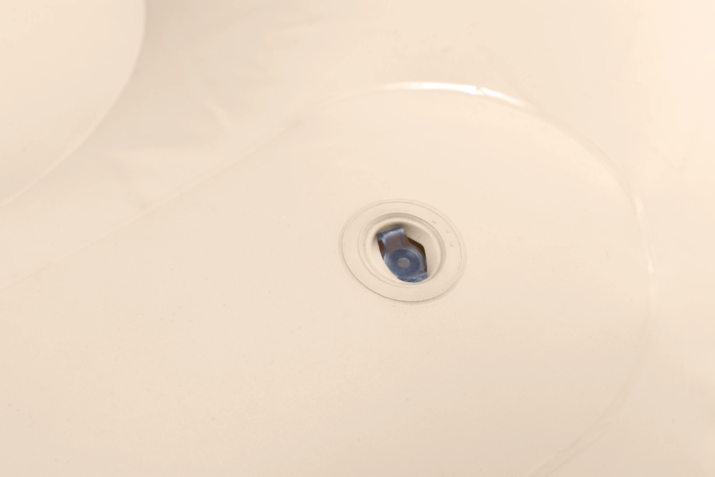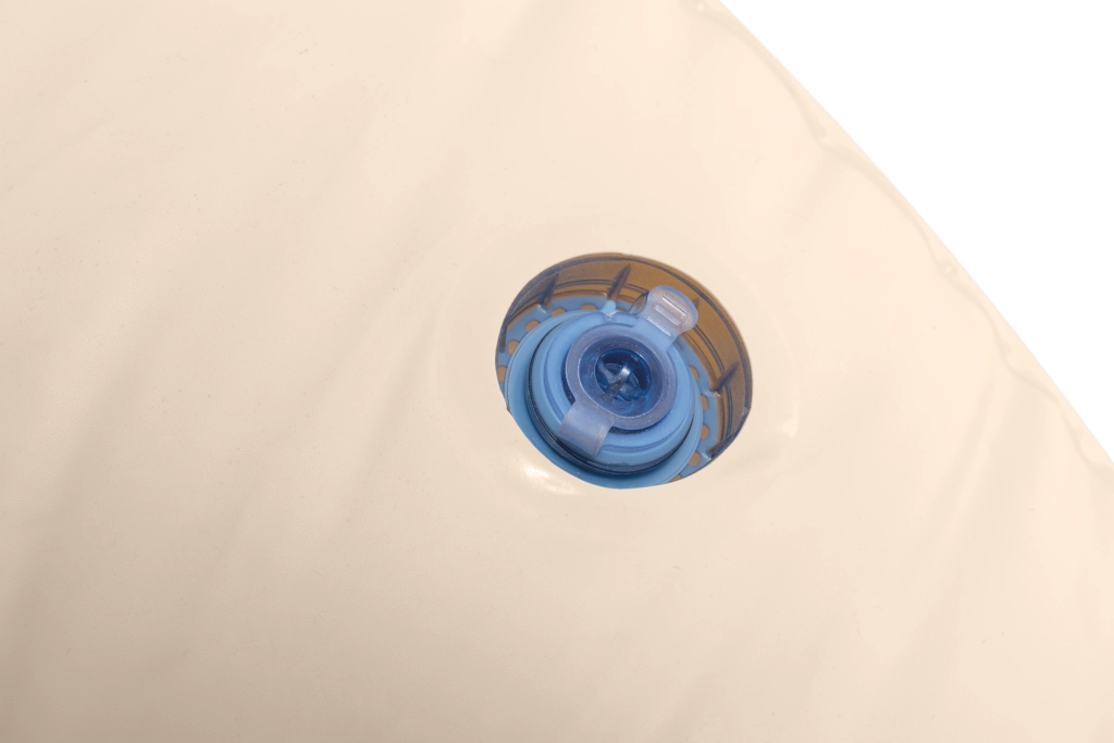 Podwójne, solidne zawory z bezpiecznymi zamknięciami umożliwiają łatwą obsługę. Po spuszczeniu powietrza fotel złożysz do małej paczki.